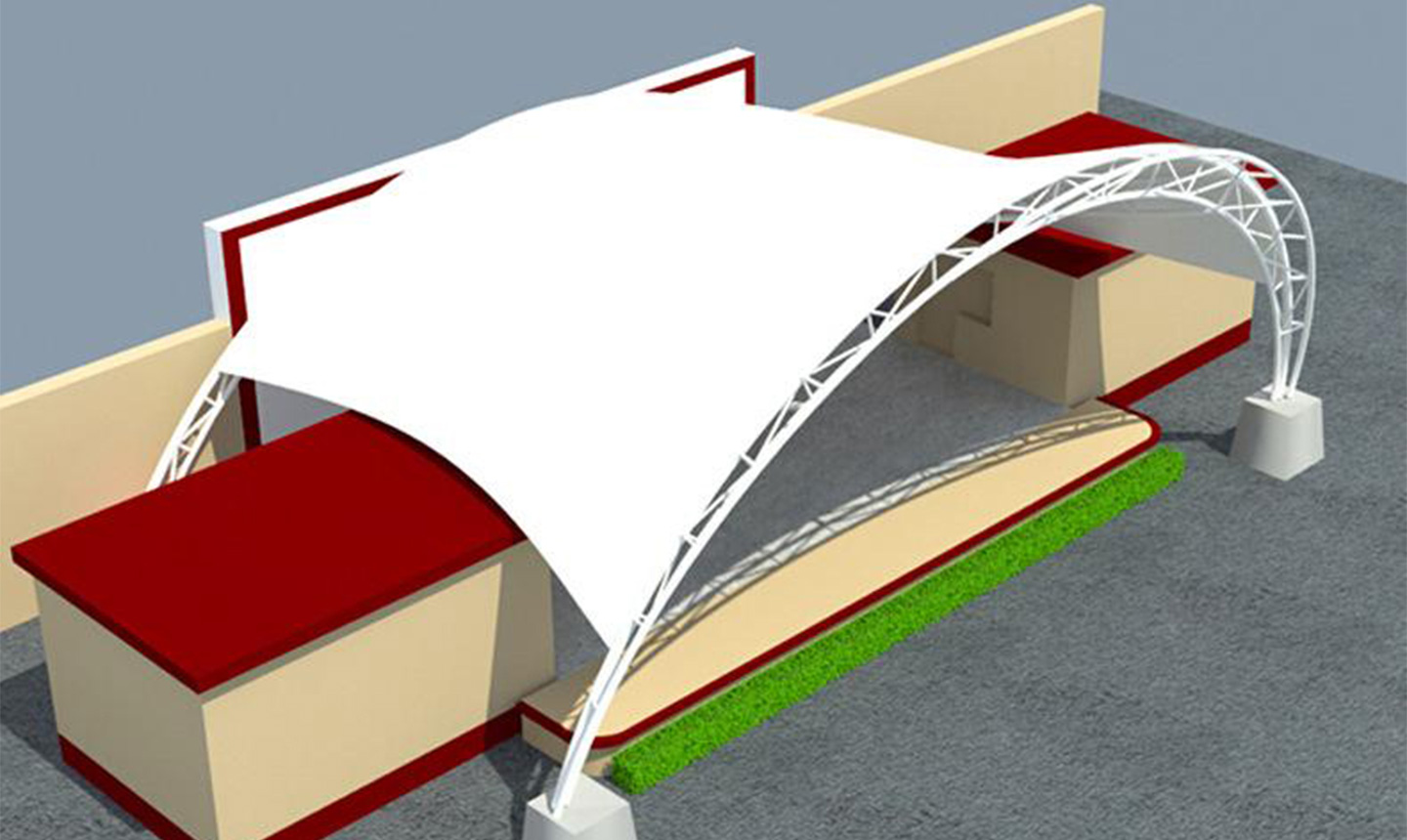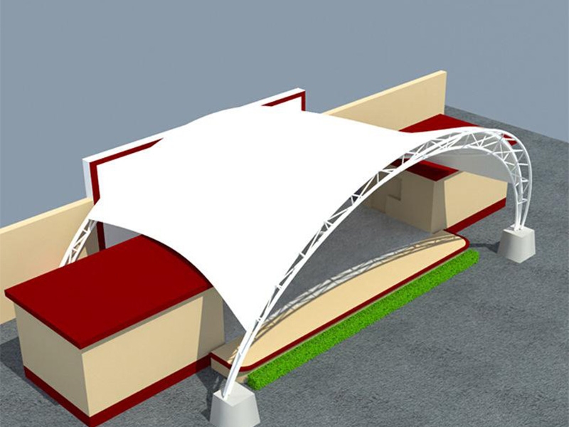 1、舞臺(tái)張拉膜結(jié)構(gòu)的共同曲面外形使其具有激烈的雕塑感,膜面經(jīng)過張力到達(dá)自平衡。