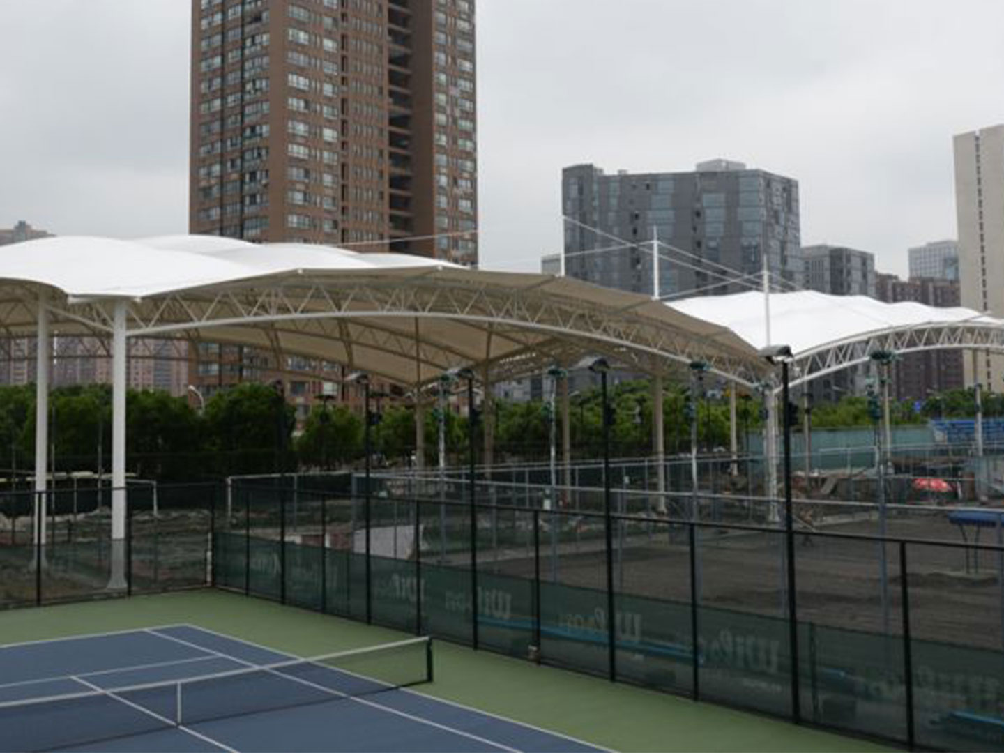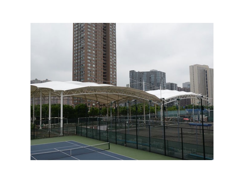 PTFE膜材的最大特點是強度高、耐久性好、防火難燃、自潔性好,不受紫外線影響,使用壽命在25年以上。具有高透光率,透光率為13%, 對熱能反射率73%,熱吸收量很少。正是因為這種劃時代的膜材料的發(fā)明,使膜結(jié)構(gòu)建筑成為現(xiàn)代化的永久性建筑。