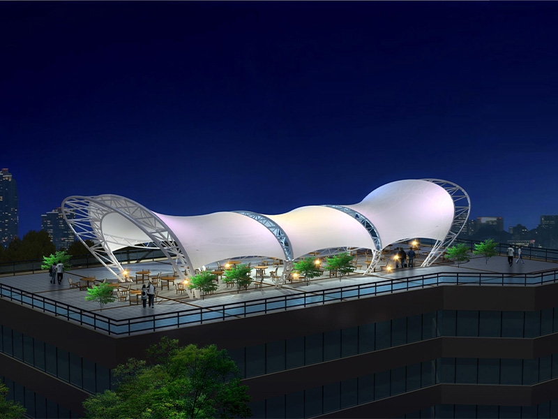 膜結(jié)構(gòu)工程所用的材料從生產(chǎn)到加工都是無毒無害,不僅使用壽命長,不會(huì)對環(huán)境造成任何影響,而且其重量非常輕,因此其基本結(jié)構(gòu)和支撐系統(tǒng)材料的使用量都大大減少。膜結(jié)構(gòu)工程所選用的材料的透光性很好,白天完全依靠自然光來滿足室內(nèi)照明,這大大縮短了照明設(shè)施的運(yùn)行時(shí)間,降低了用電量,而這種明亮的光線是依靠光線的漫反射,會(huì)感覺很柔軟。